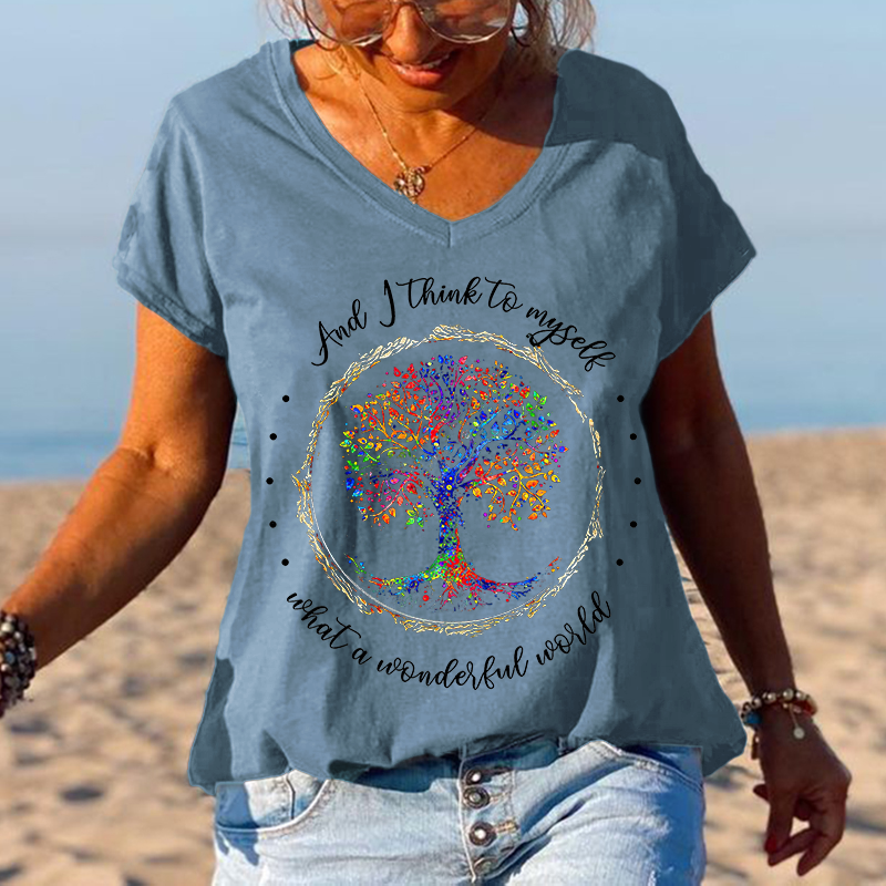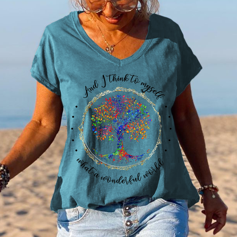 | Product Name | And I Think To Myself Multicolored Tree Printed Graphic Tees | ||