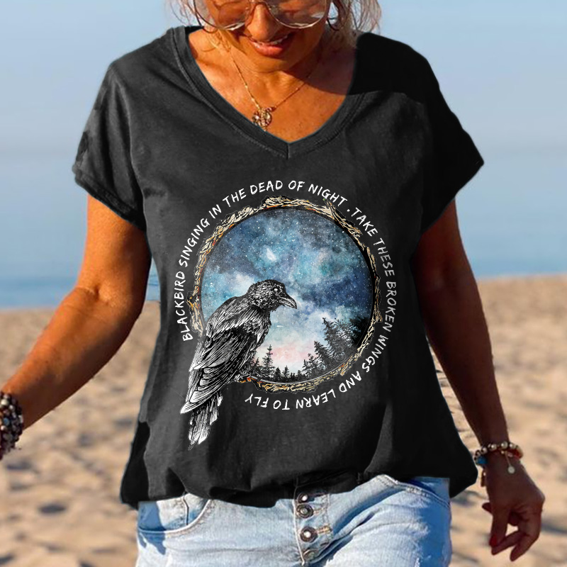 | Product Name | Blackbird Singing In The Dead Of Night Printed Women's T-shirt | ||