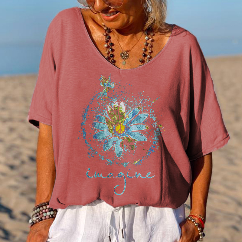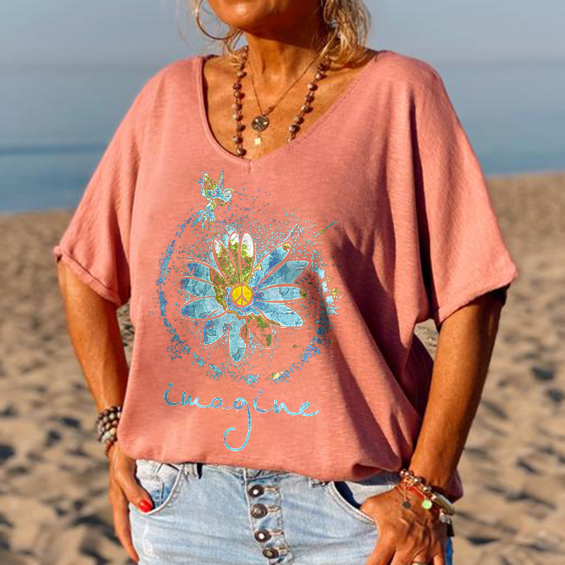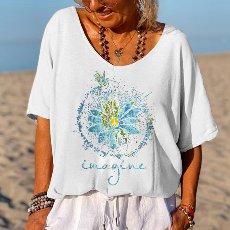 | Product Name | Imagine Printed Flower Hippie T-shirt | ||