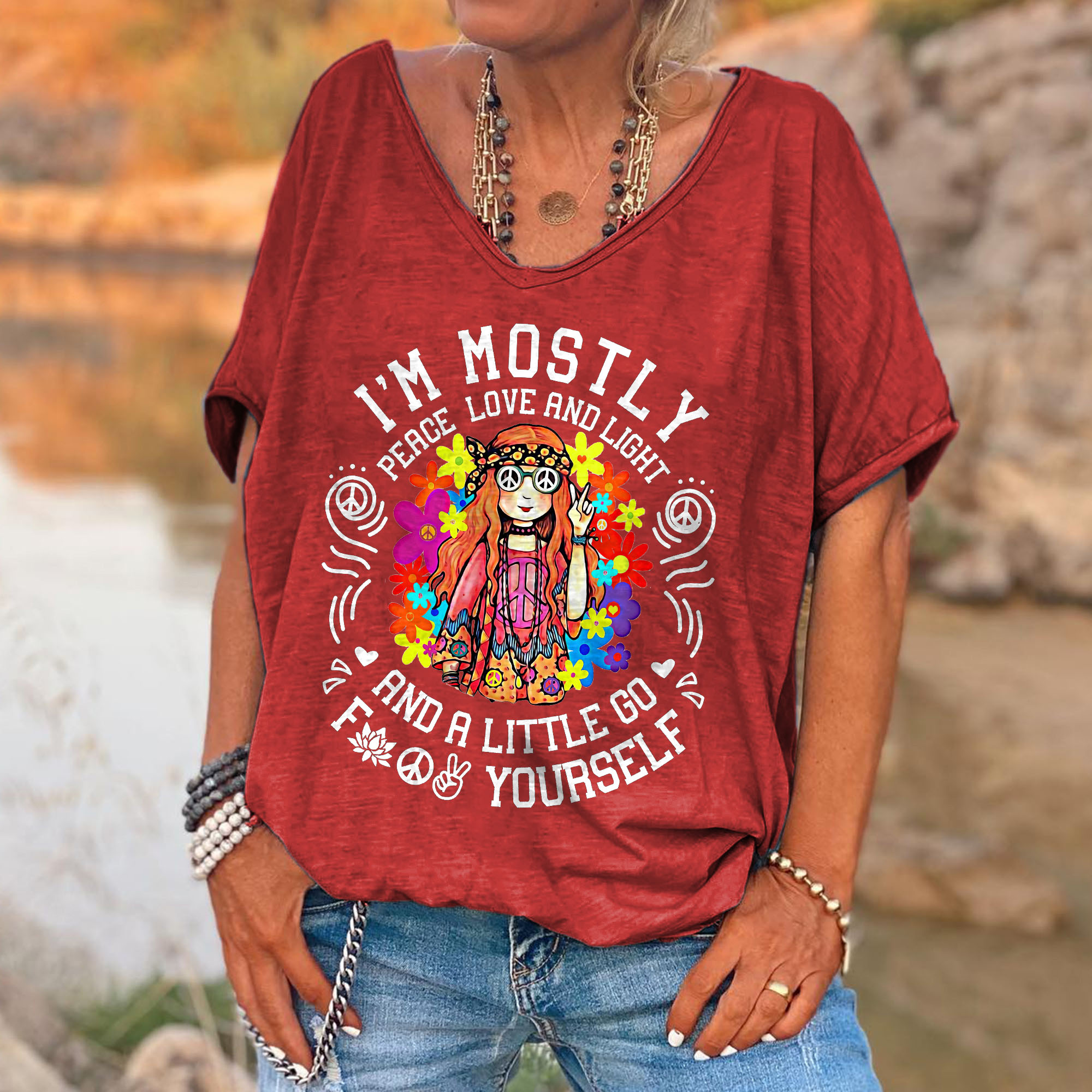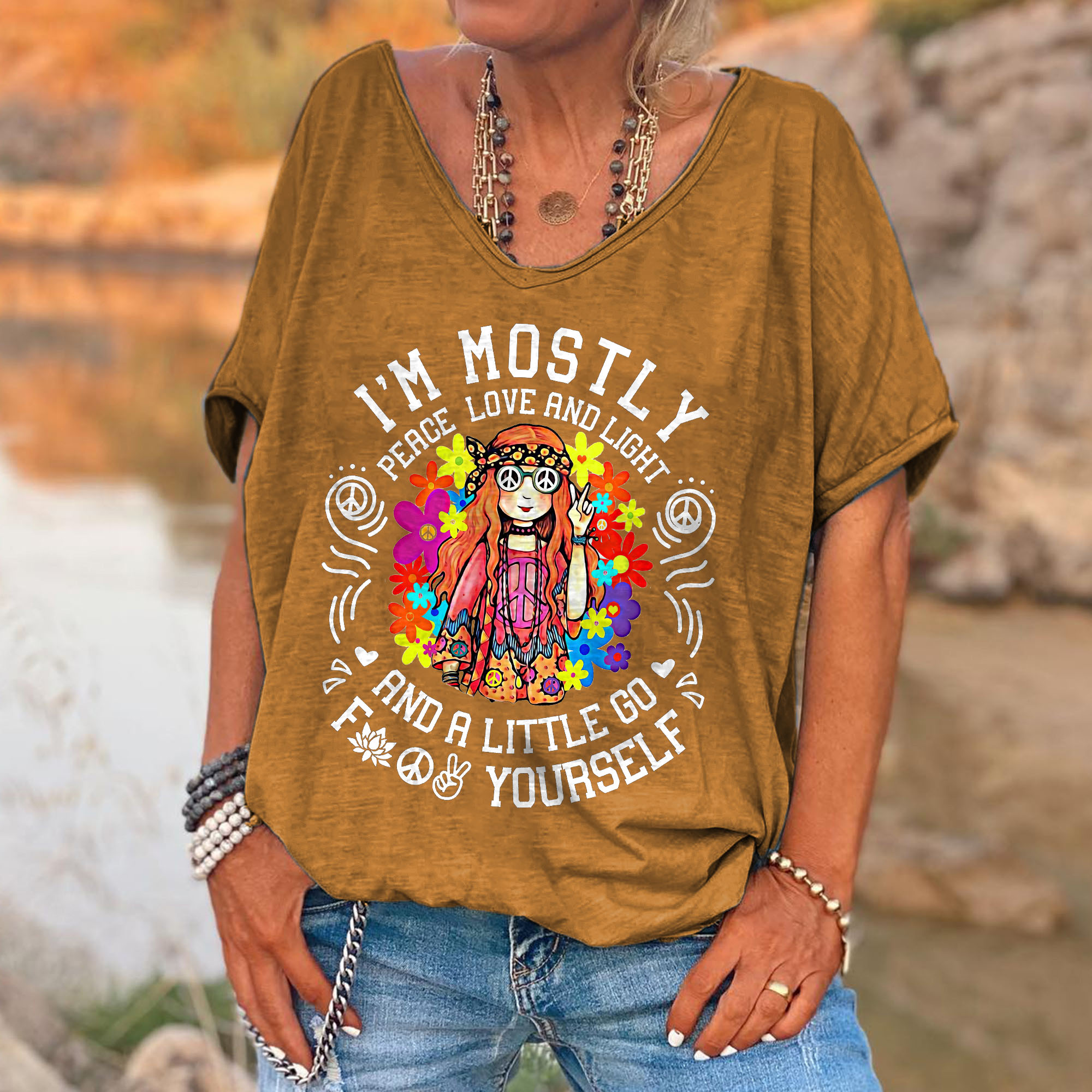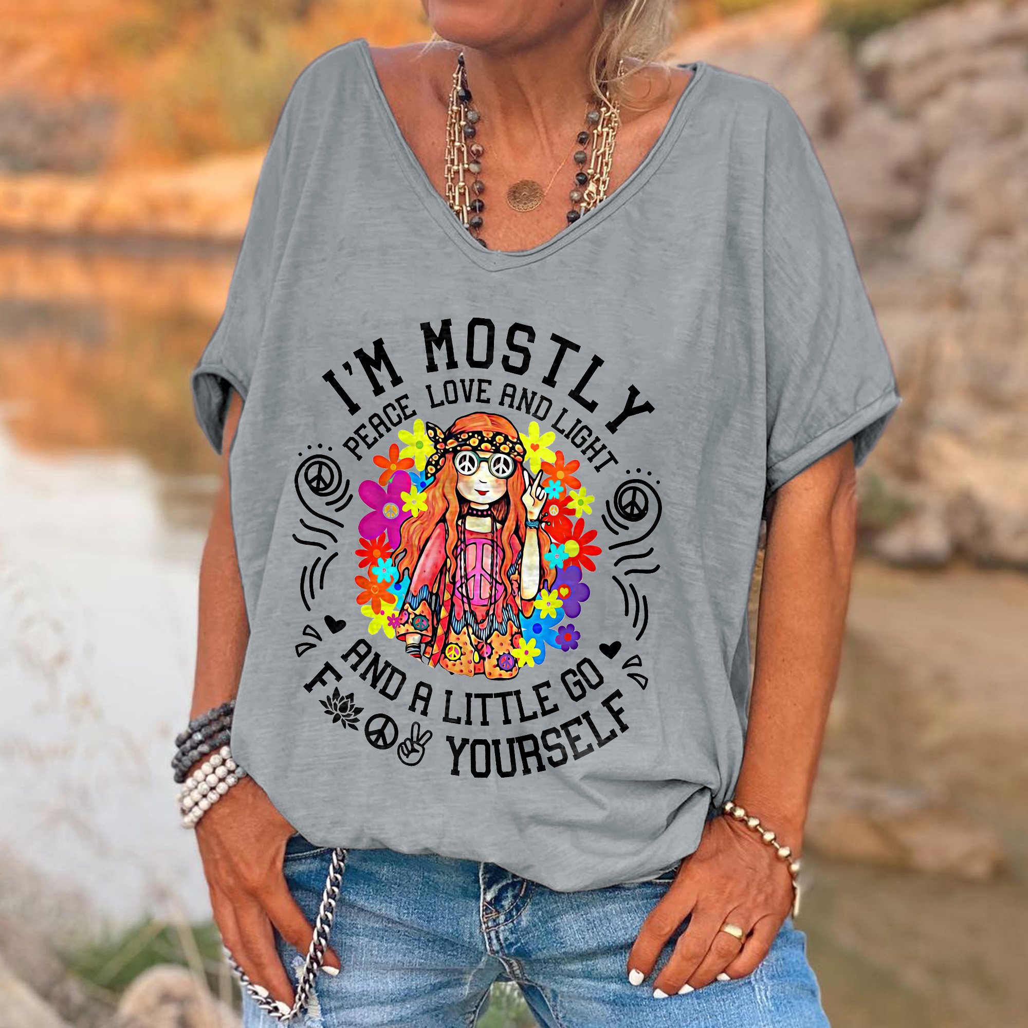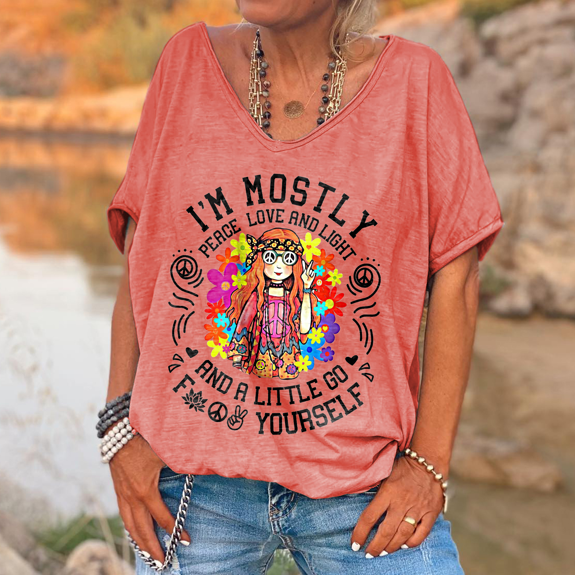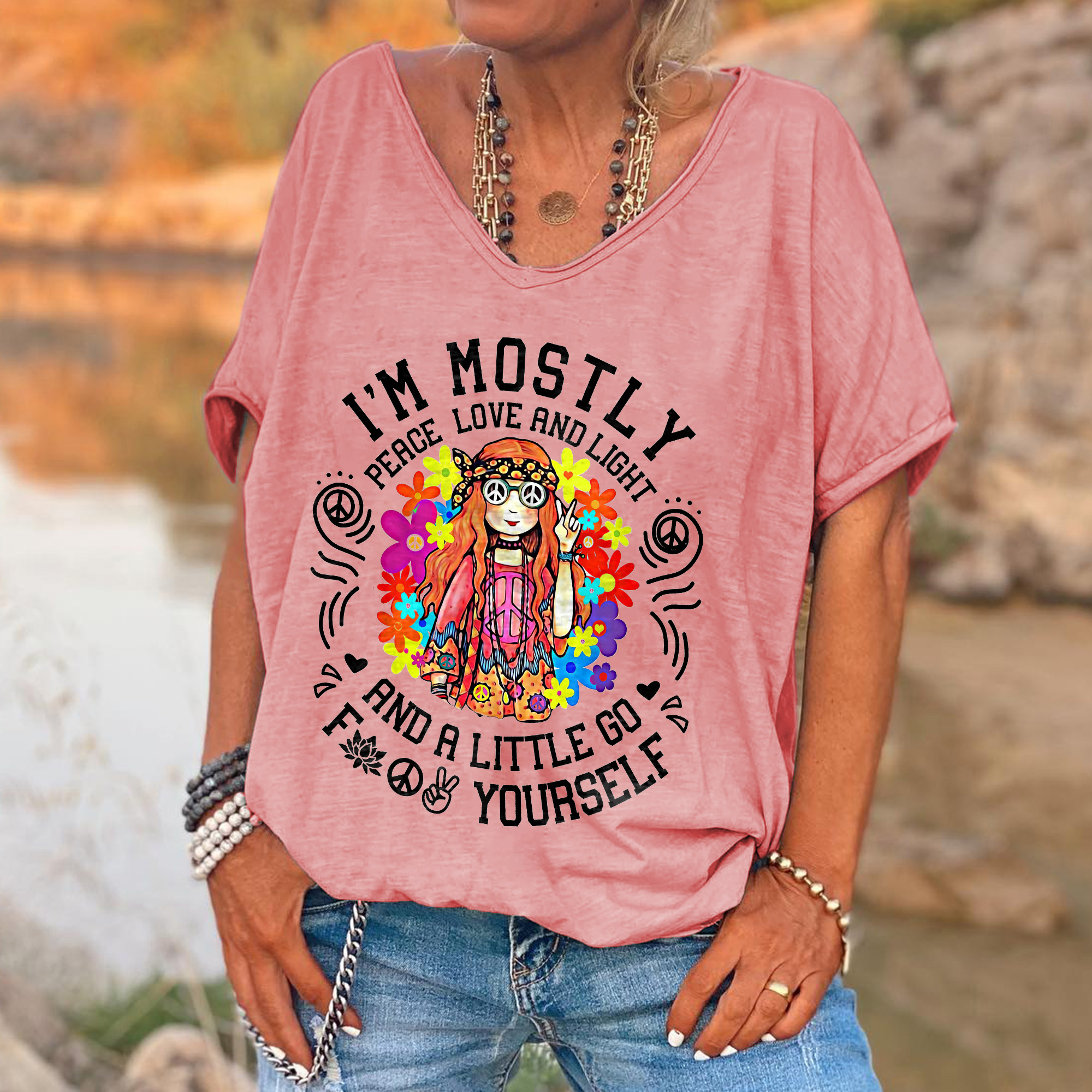 | Product Name | Peace Love And Light Printed Hippy T-shirt | ||