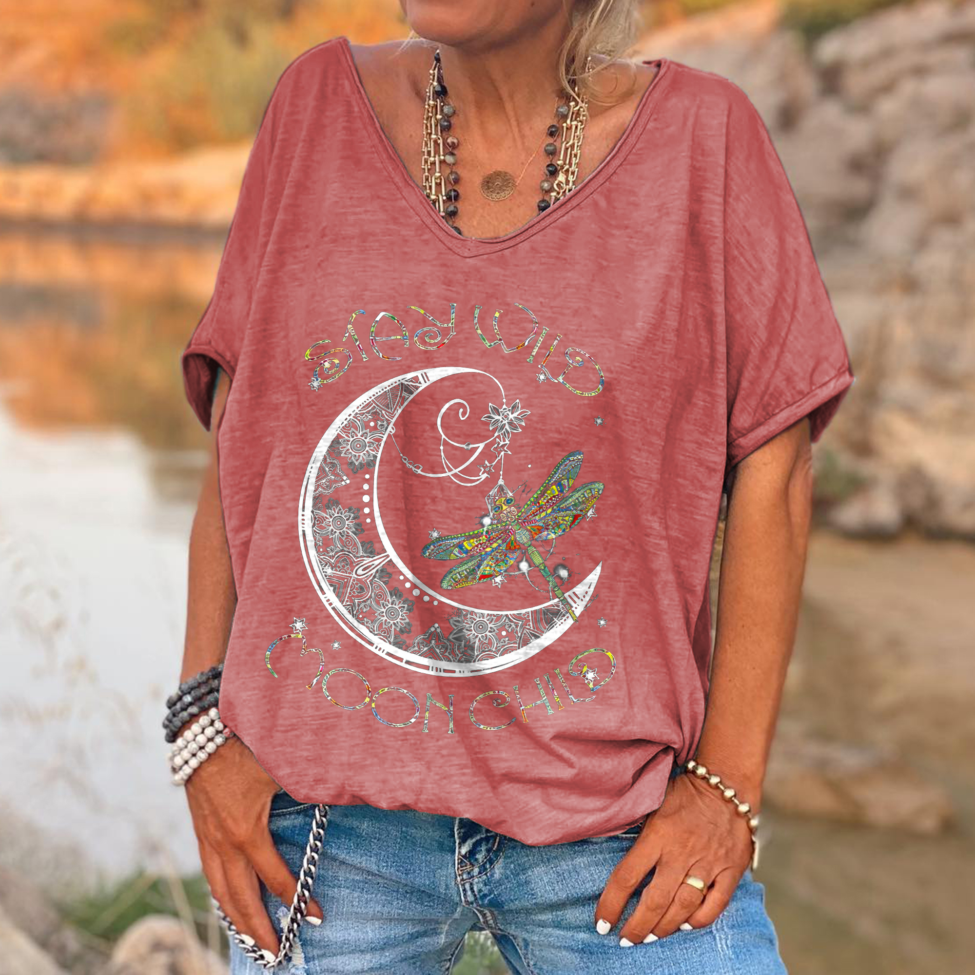 | Product Name | Stay Wild Moon Child Dragonfly Black T-shirt | ||