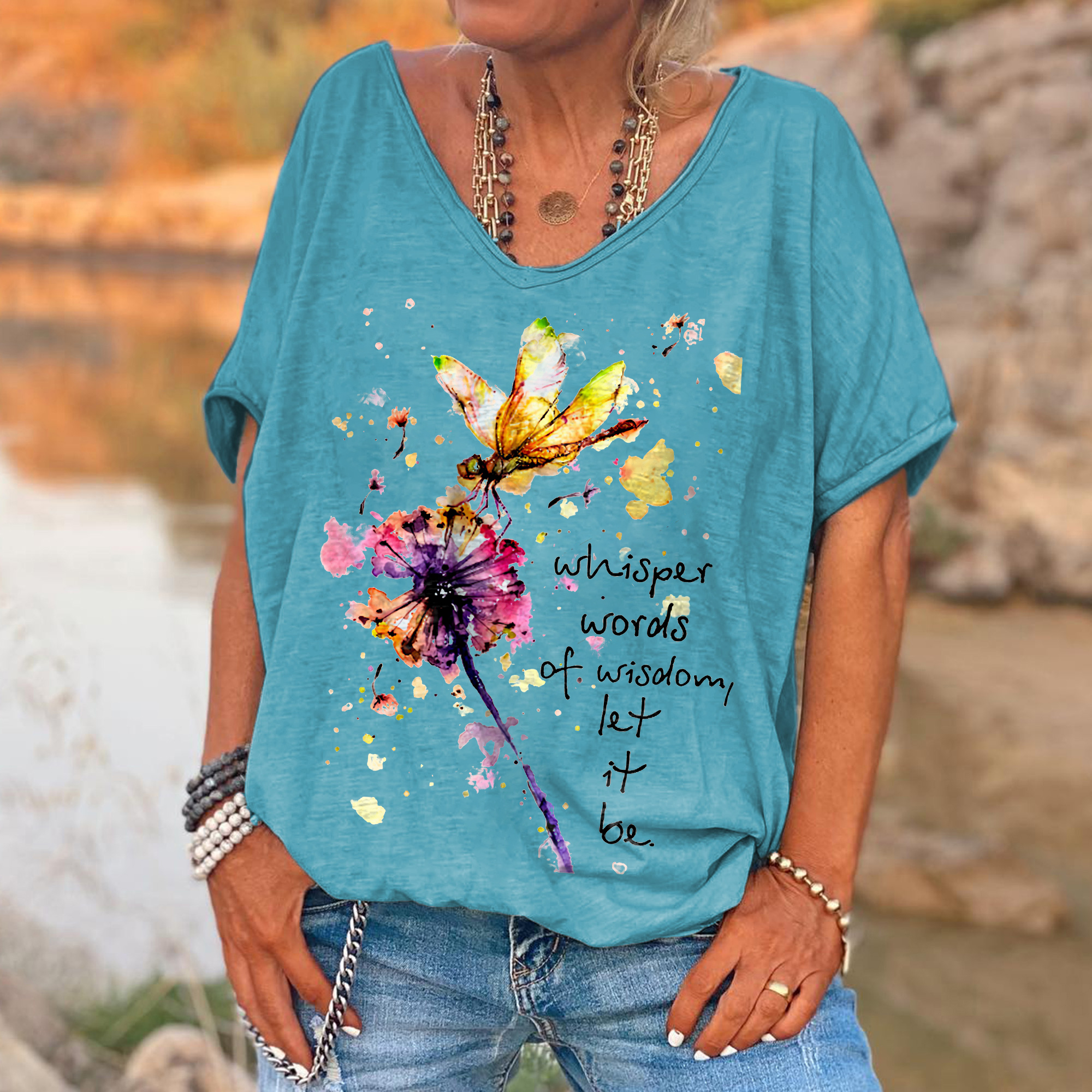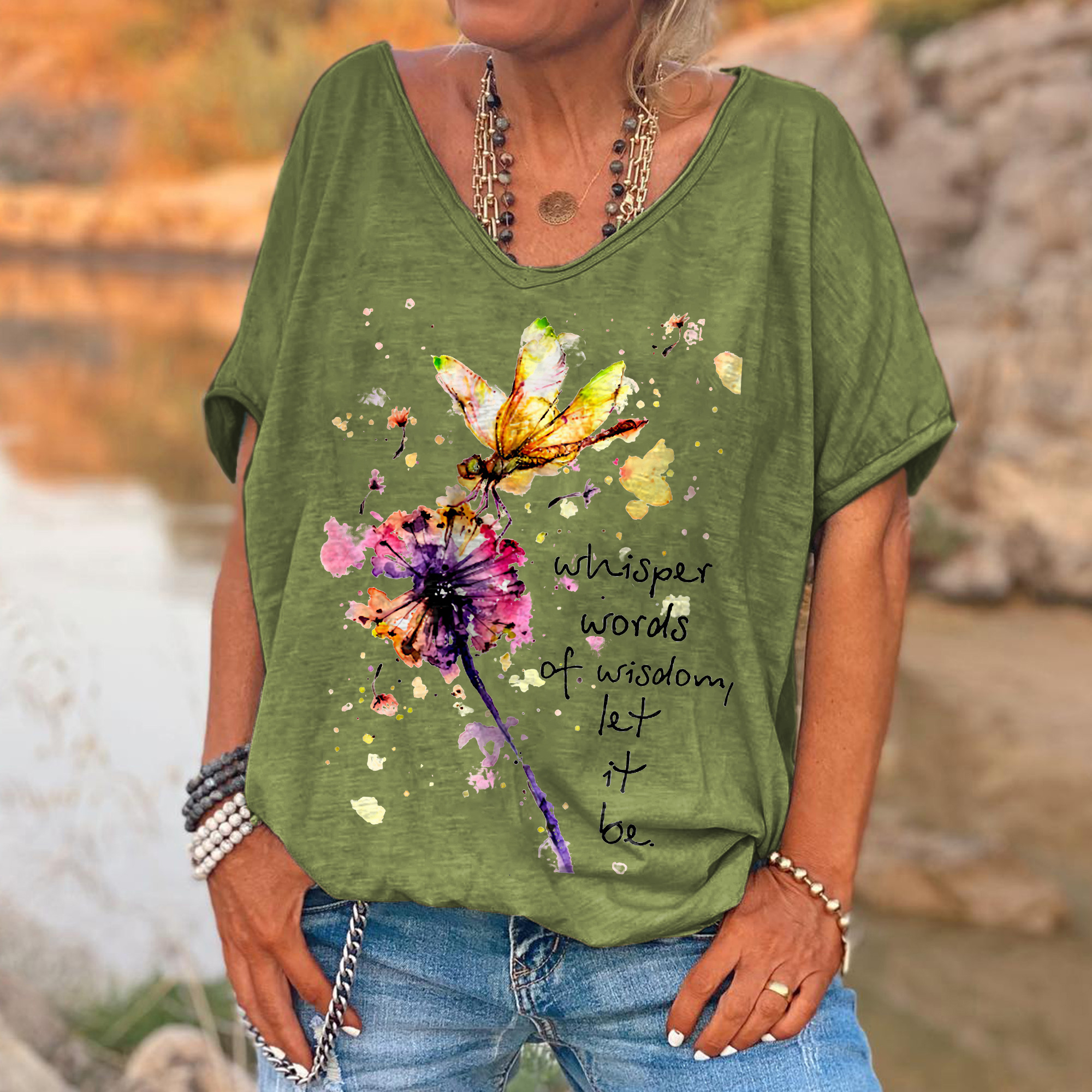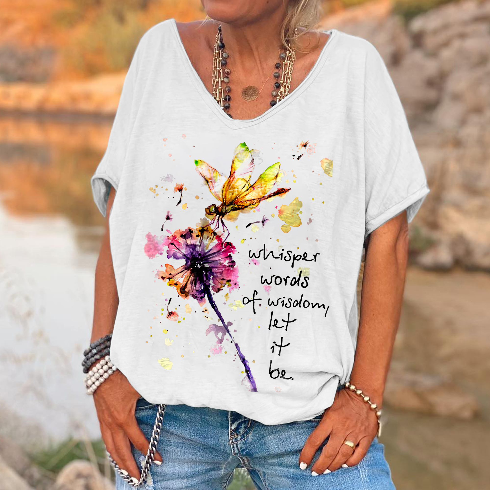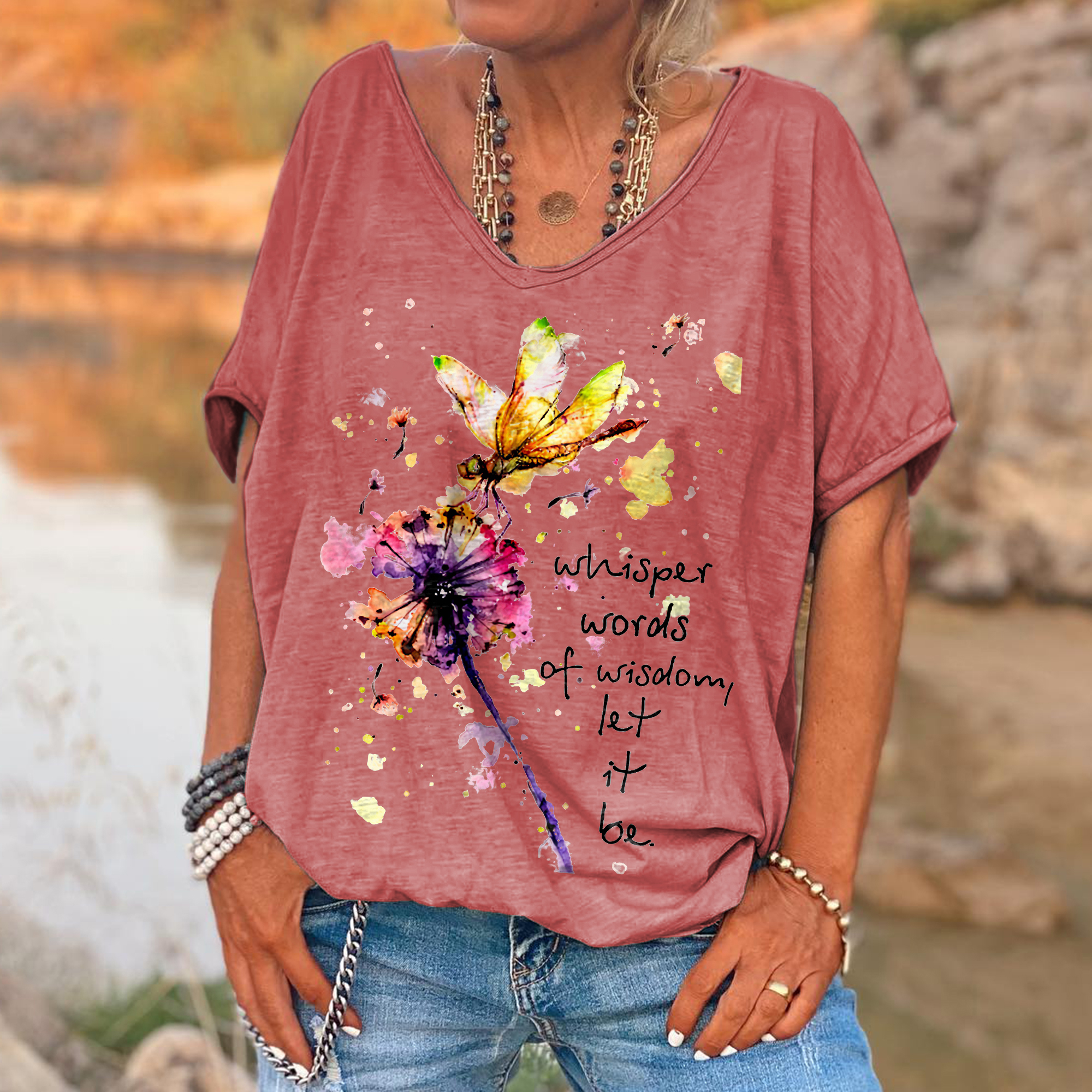 | Product Name | Whisper Words Of Wisdom Dragonfly Printed Hippie T-shirt | ||