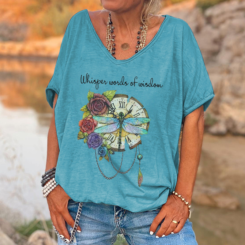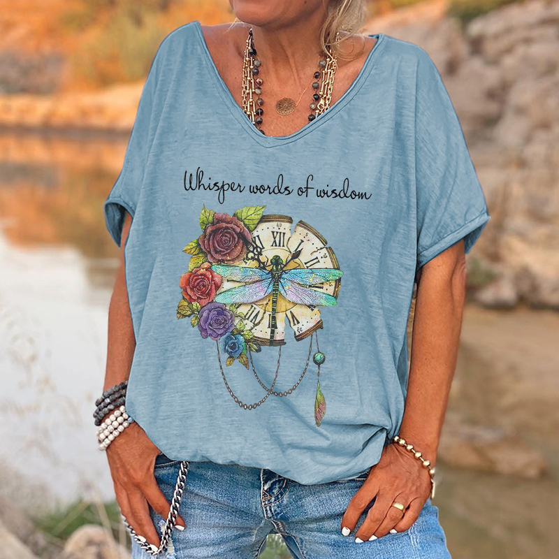 | Product Name | Whisper Words Of Wisdom Print Dragonfly And Flowers Graphic Tees | ||