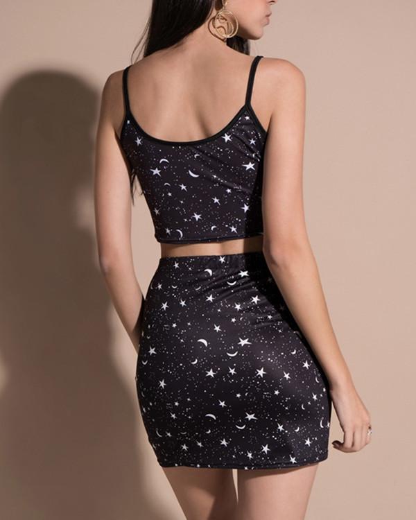 Printed Sun Suspender Vest Suit