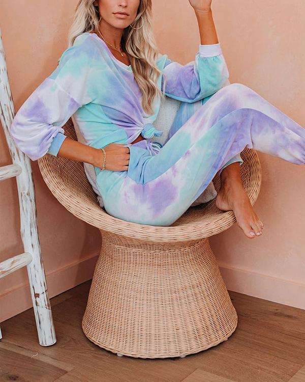 Theme:Summer,Fall,SpringNeckline:O NeckPattern Type:Tie DyeStyle:CasualSleeve Type: Long SleevesMaterial: PolyesterPackage included:1 *LoungewearNoteDue to the difference between different monitors, the picture may not reflect the actual color of the item.