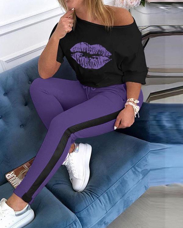 Item ID: T0375 Description: Style:Casual Pattern Type:Print Material:Polyester Neckline:One Shoulder Occasion:Casual Package included: 1*Set Note Due to the difference between different monitors, the picture may not reflect the actual color of the item.